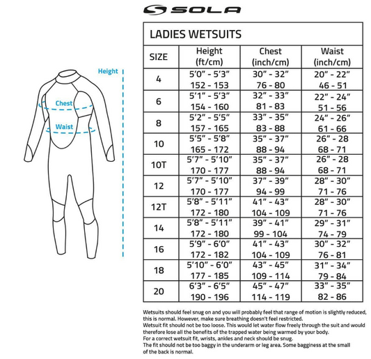 Sold outSola Ignite 3/2mm Fullsuit (Blue)